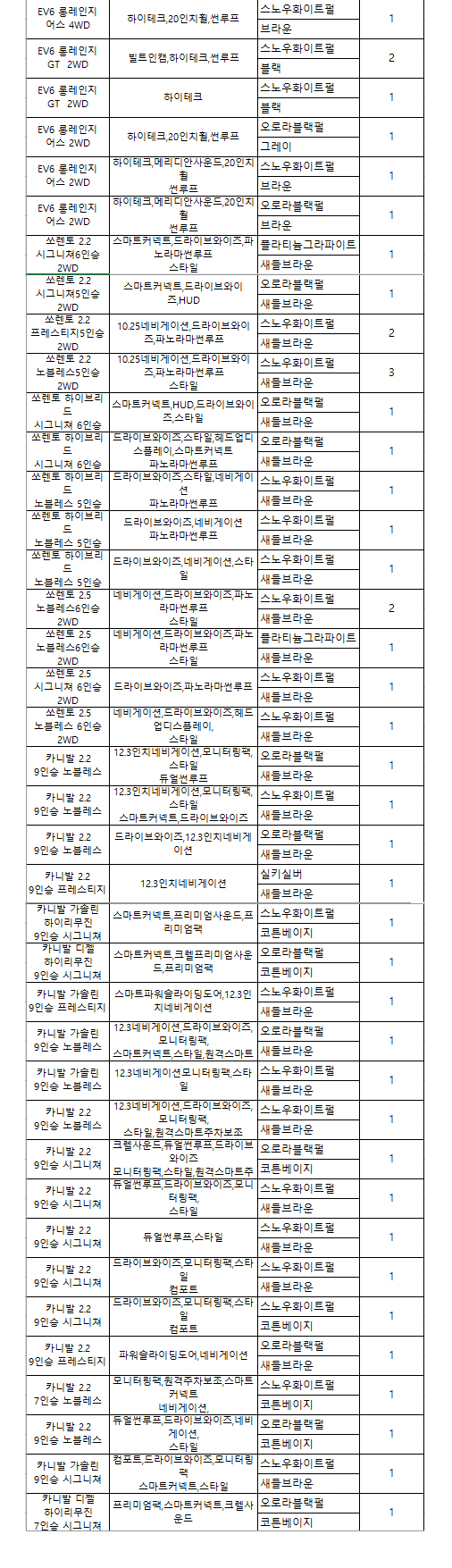 카앤카재고목록입니다.(기아자동차)